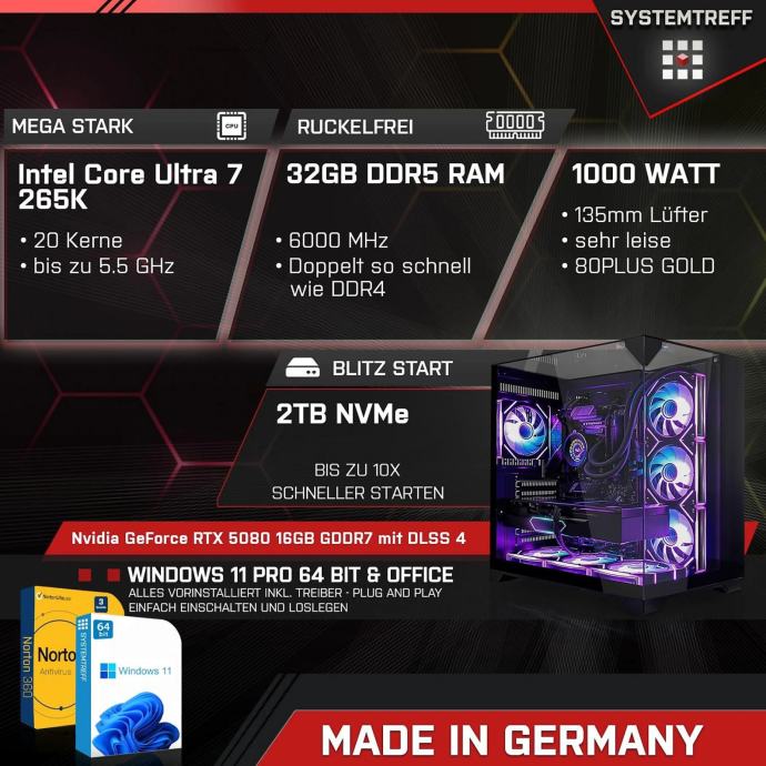 • CPU: Intel Core Ultra 7 265K - 8 x 3,9 GHz (Turbo 5,5 GHz)