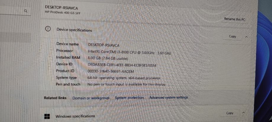 CPU: Intel i3 8100 (4C/4T, 3.60Ghz)