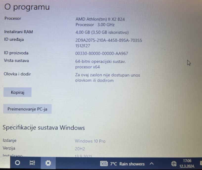- Marka procesora