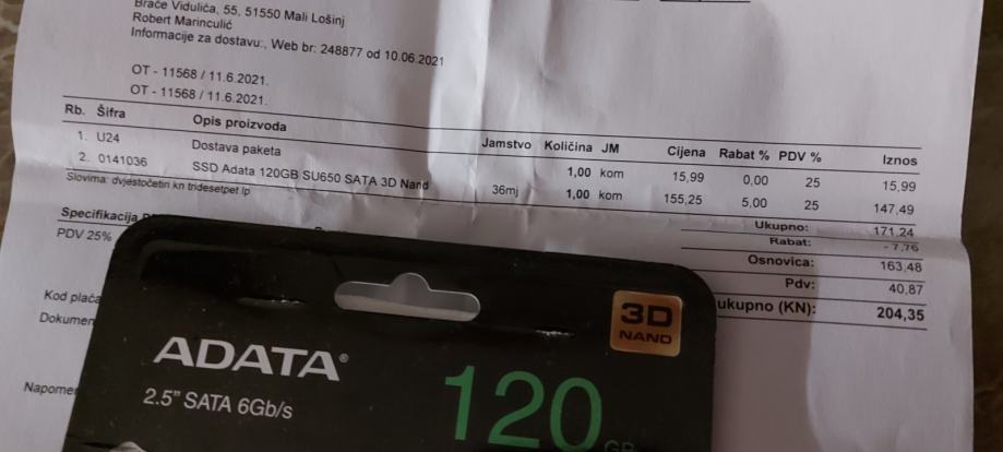 SSD ADATA 120gb(novi sa gar.) + HDD 500GB
