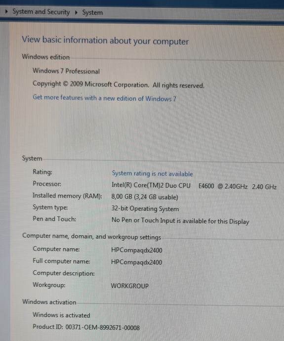 Intel Core Duo E460 procesor 2.4 GHz 8GB RAM 230GB HDD