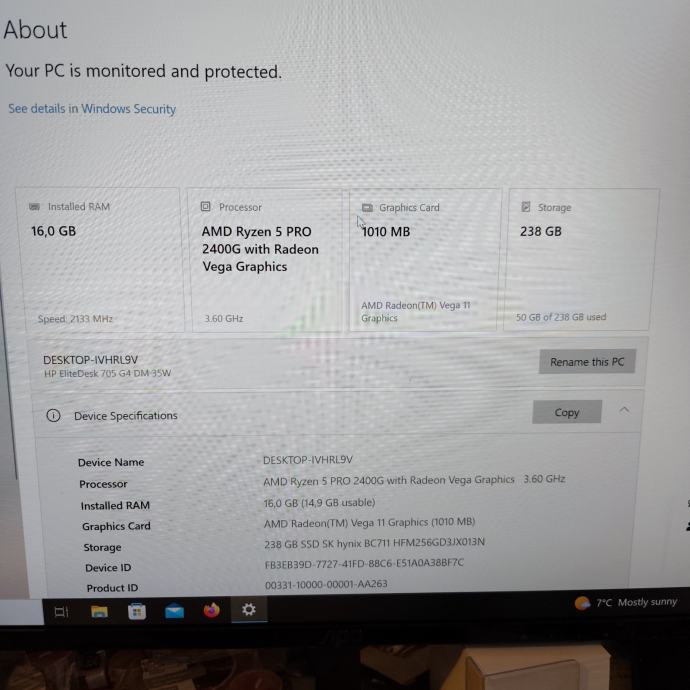 Ryzen pro 5 2400g sa 16gb ddr4 i vega 64 grafikom na procesoru. 256gb m.2 ssd disk .