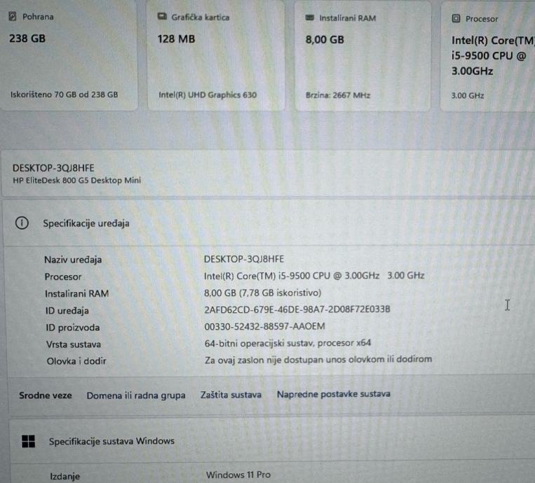Prodajem HP EliteDesk 800 G5 mini stolno računalo. Radi se o kompaktnom poslovnom računalu koje ne zauzima puno prostora, a nudi solidne performanse za svakodnevne zadatke.
