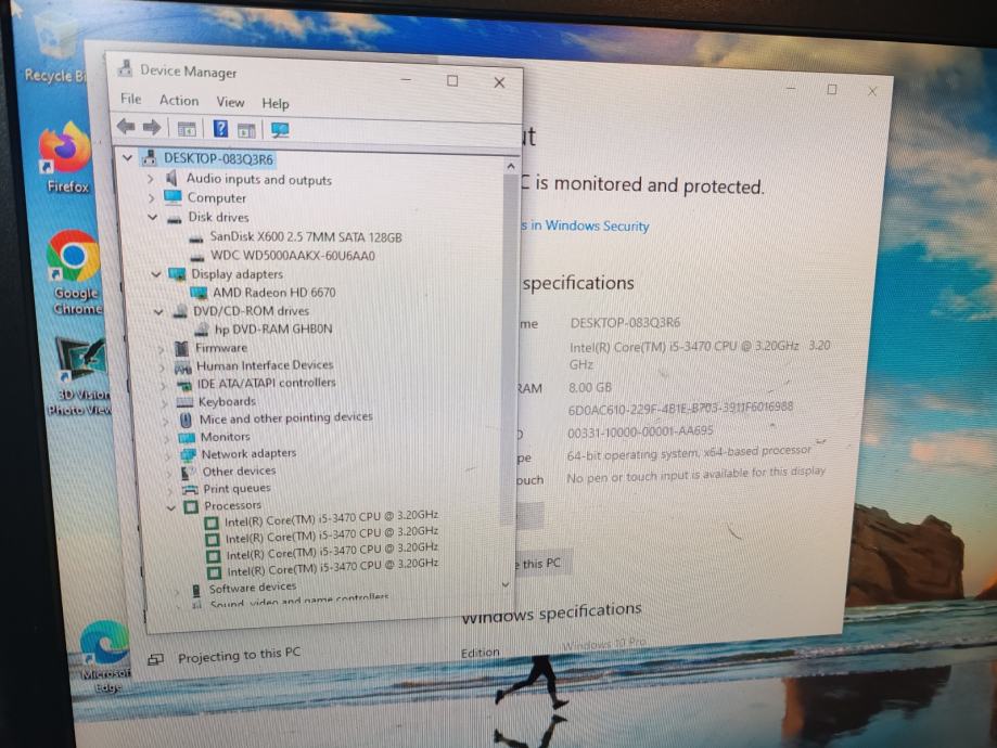 HP Pro 3500 G2 Core i5-3470 8GB ddr3 120 GB ssd Radeon HD6670 hdmi