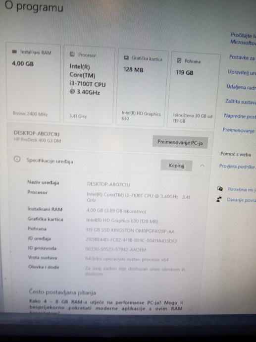 Prodaje se HP ProDesk 400 G3 Mini Desktop Computer i3-7100t