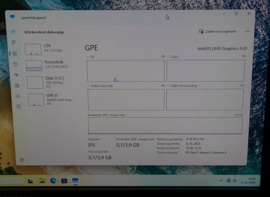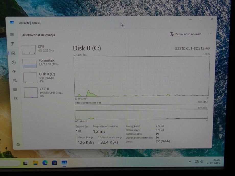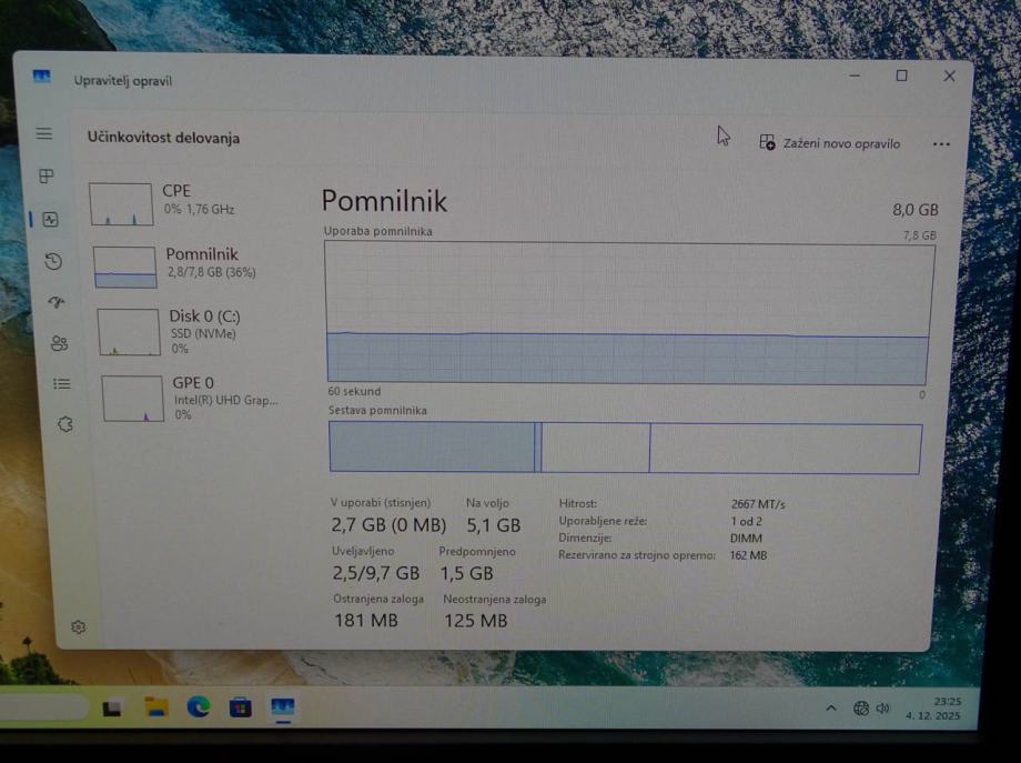 RAM: 1x8GB DDR4 (još jedno mjesto dostupno za dodatni ram modul)
