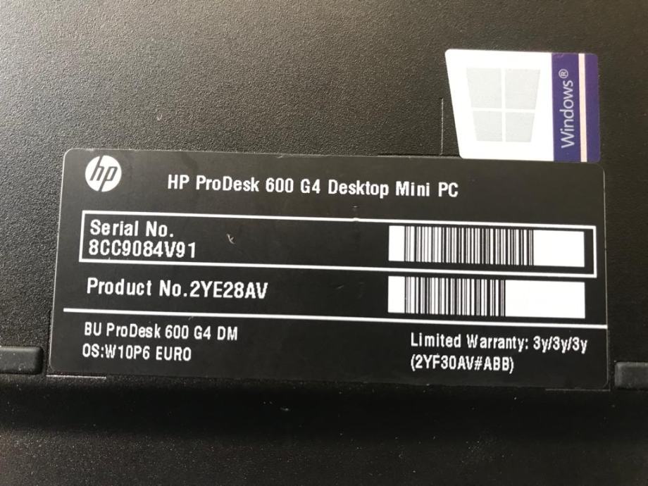 Prodajem dva Mini PC u izvrsnom stanju jedan : HP ProDesk 600 G4, a drugi HP ProDesk 600 G3 8GB RAM, disk 256GB, Original win 10 pro spremni za rad.
