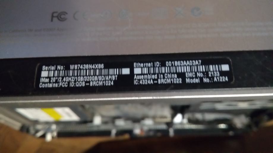 8. IMac A1145, 2006.g. kompletan, ekran i sve ostalo ispravno, osim, napajanja i matične 20€