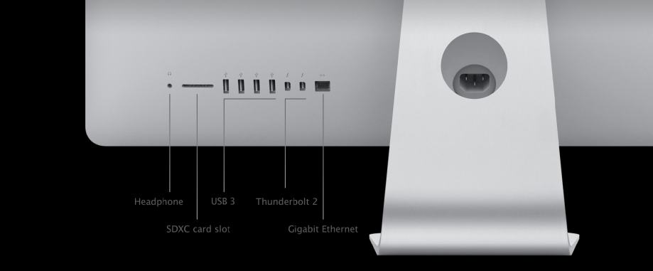 4 x USB 3.0 ports, dual Thunderbolt 2 ports, Gigabit Ethernet, 802.11ac Wi-Fi (802.11a/b/g/n backwards compatible), and Bluetooth 4.0