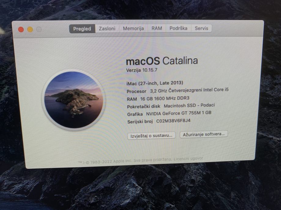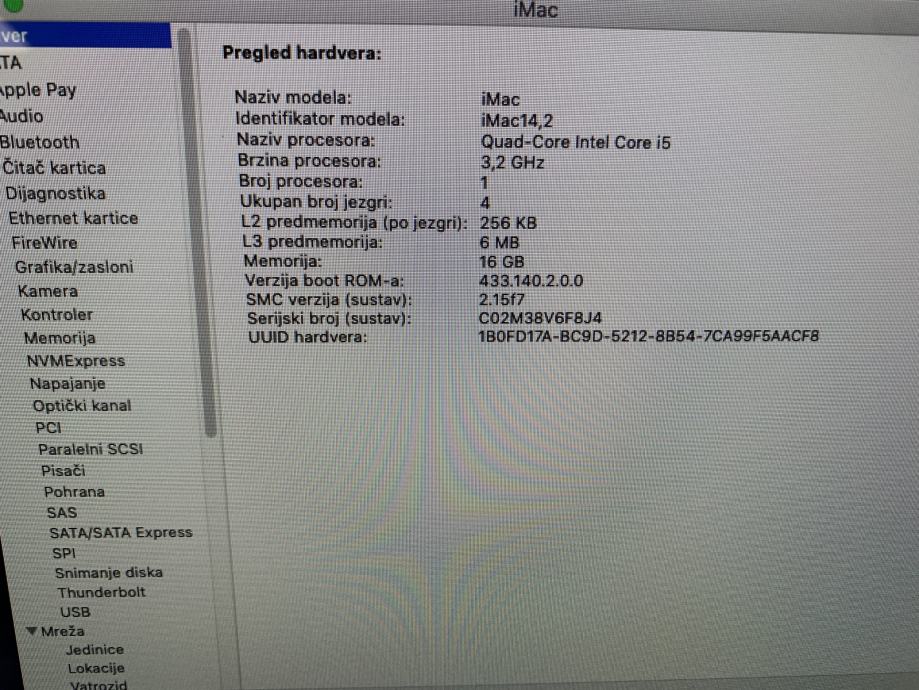 Prodajem iMac 27 inča, model iMac14,2 (Late 2013), u izvrsnom stanju. Korišten isključivo u nepušačkom prostoru, bez ikakvih oštećenja ili kvarova. Sve radi savršeno.