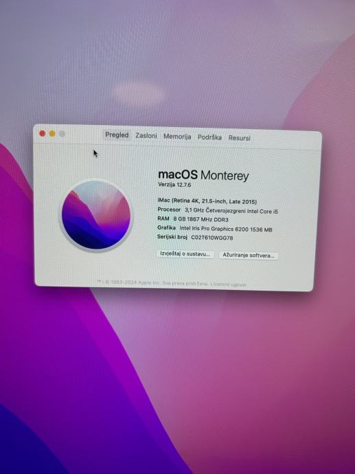 • Operativni sustav: macOS Monterey 12.7.6