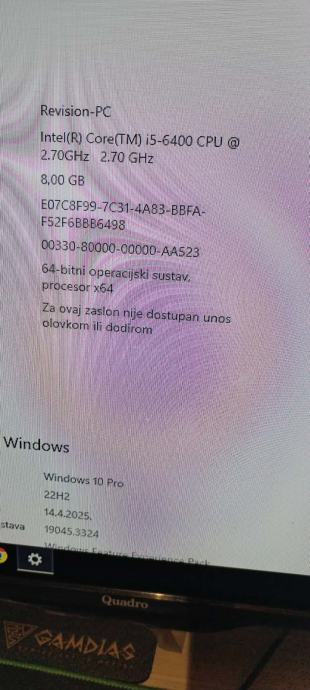 Intel i5 - 6400. Ram 8 GB. NVMe 256 GB