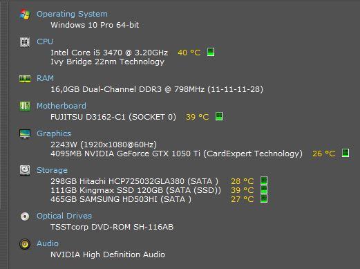 Intel i5, nVidia GTX 1050 Ti, 16gb RAM, SSD, HDD