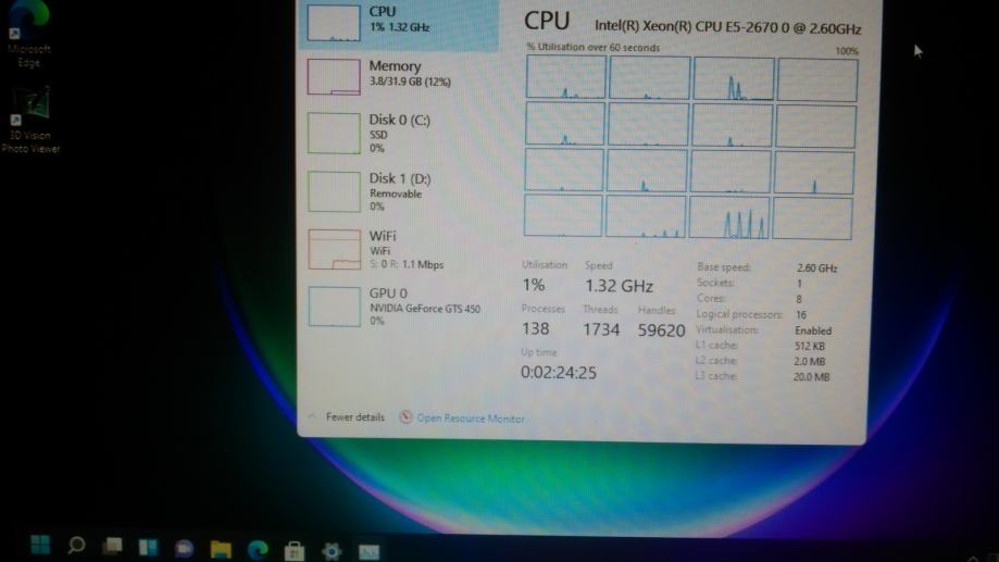 INTEL XEON E5 2670 16x(3,3Ghz) 32Gb ddr3 500Gb ssd GTS 450 Win11