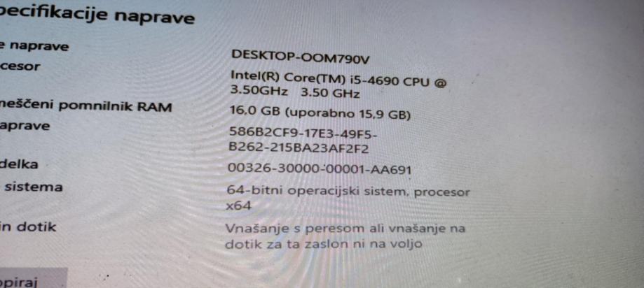 Nameščen je oper.sistem win10 pro