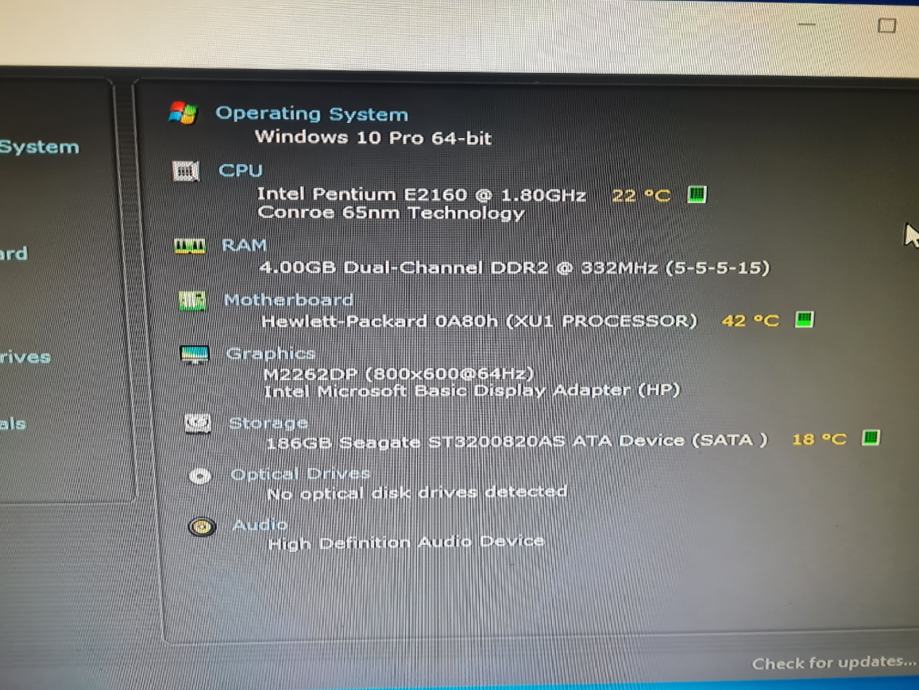 Ispravan PC. Instaliran novi Windows 10 Pro. Intel Pentium E2160 1.80Hz, 4GB RAM,180GB HDD. Dolazi sa naponskim i VGA kablom. Moguća zamjena za mobitel/laptop/PS3. Cijena 50€.