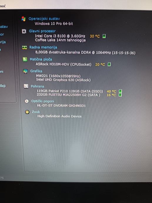 Prodajem rabljeno stolno računalo s Intel procesorom Inter Core i3 8100 brzine 3.6 GHz. Računalo ima 8 GB radne memorije i ssd 120 GB tvrdi disk + 250GB idealno za svakodnevnu upotrebu. Novi instalirani Windows i Word Dolazi samo kućište bez dodatne opreme.