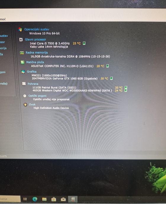 Prodajem rabljeno stolno računalo s Intel procesorom i5 7500 brzine 3.4 GHz. Računalo ima 16 GB radne memorije i 500 GB tvrdog diska i ssd diska 120 GB. Grafička kartica je GTX 1060 6GB.Kućište je s prozirnom bočnom stranom i mrežastim prednjim panelom za dobru ventilaciju na gornjem dijelu ima 2 rgb ventilatora u plavoj boji. Kučište je LC-POWER 706B - Destiny X, RGB.Sve komponente su u funkciji. Prodaje se samo računalo bez monitora, tipkovnice i miša.Novo instalirani Windowsi i word.