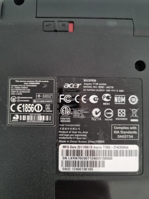 Prodajem Acer Aspire 7739G laptop (serija Aspire 7739, godina proizvodnje 2011.). Laptop je korišten i vidljivi su tragovi korištenja na kućištu, kao što se vidi na fotografijama, no ispravan je i radi bez greške.