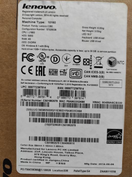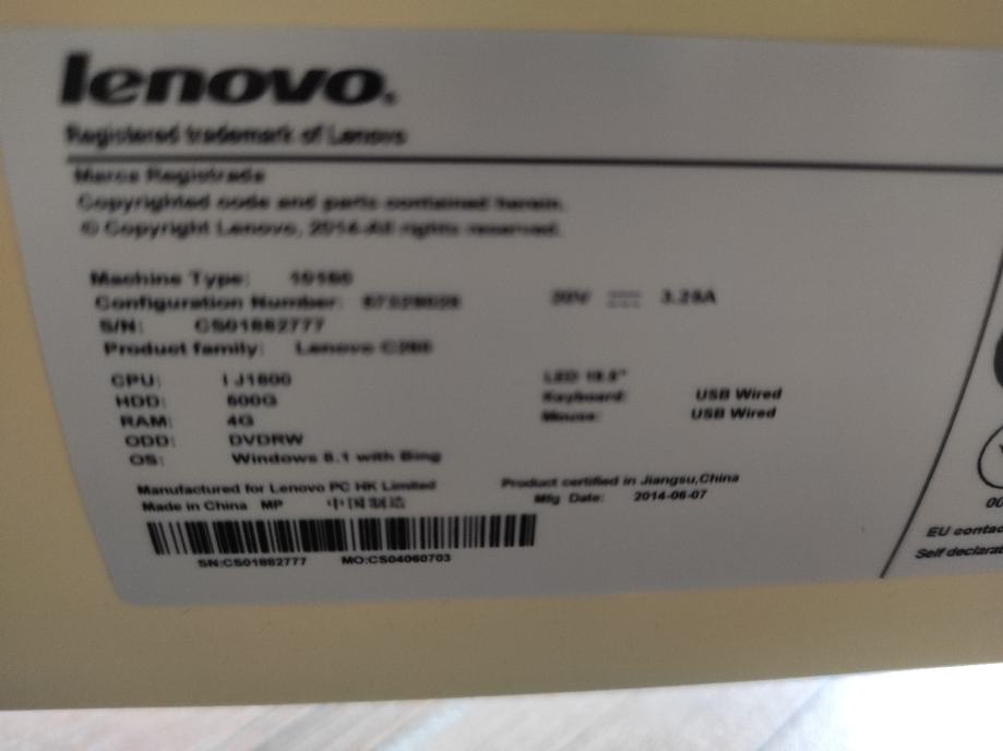 PC Lenovo all in one.