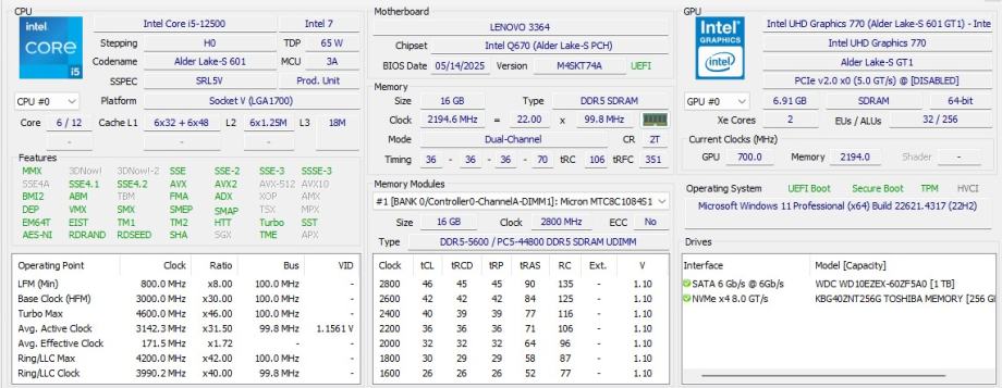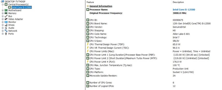 CPU: Intel® Core™ i5-12500 Processor 18M Cache, up to 4.60 GHz