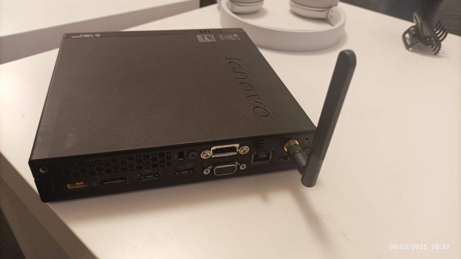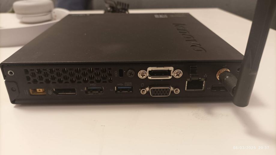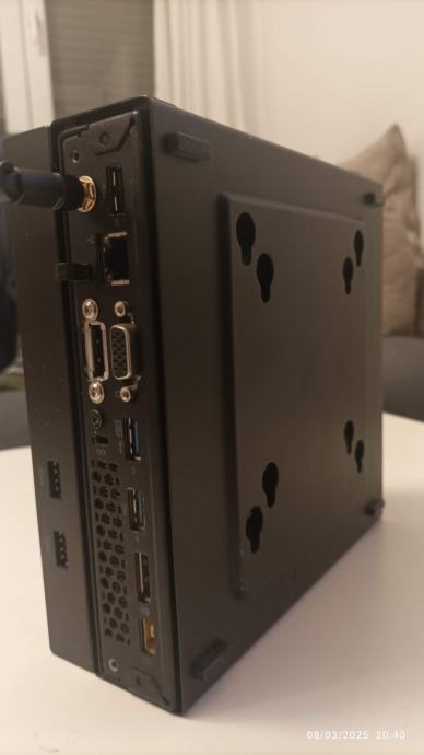 malo računalo sa puno ulaza/izlaza, 4x USB 3.0 (1x USB 3.0 always on), 1x USB 2.0, VGA izlaz, 2xDP izlaz ( dodatan adapter DIsplaPort na HDMI), 1x mikrofon ulaz stereo, 1x kombinirani ulaz za slušalice/mikrofon,, LAN gigabitni, WiFI, antena, bluetooth, instalirani i aktivirani Win10 Pro.