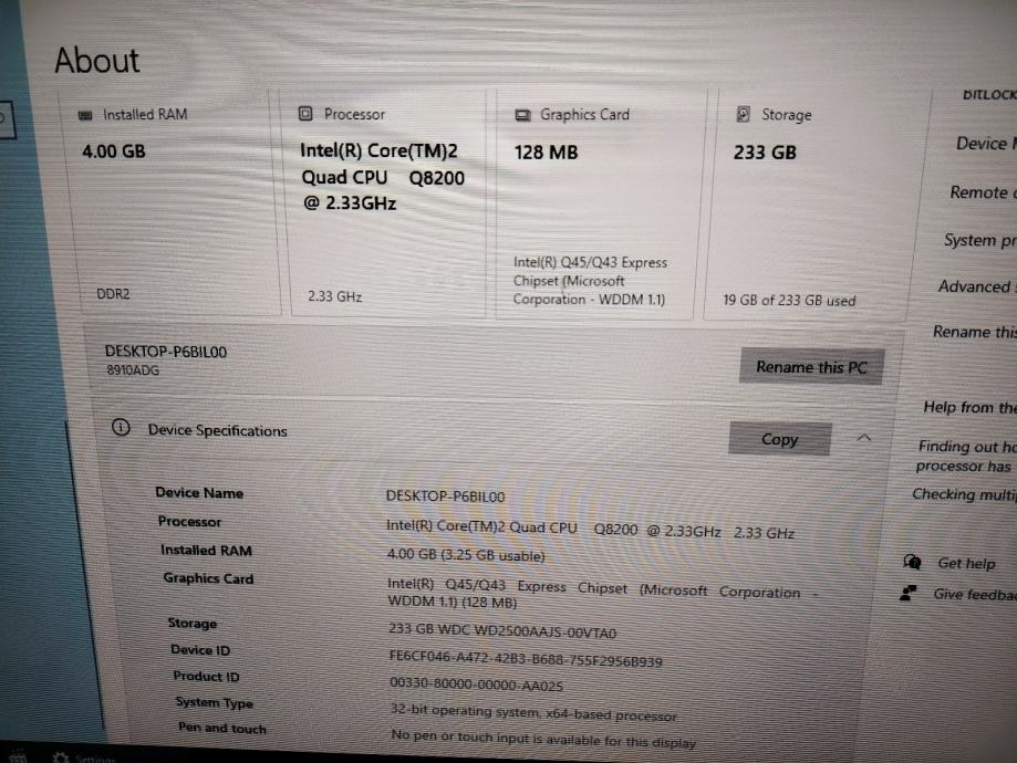 Intel Core 2 Quad 8200 2.33 GHz, 250GB HDD, 4GB RAM