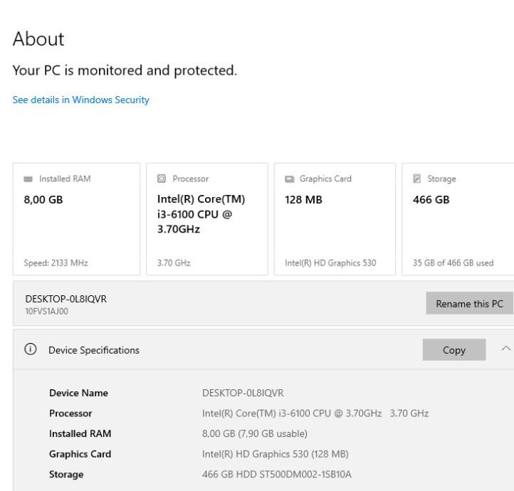 CPU: Intel I3-6100
