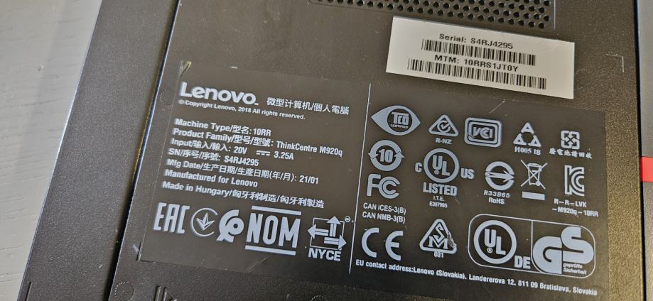 Lenovo ThinkCentre M920q (I5-8500T 16Gb DDR4 512Gb NVME disk)