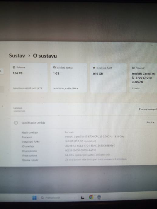 Lenovo ThinkCentre M920t TW; Core i7 8700 ,16 gb,250 ssd,1 tb,GTX 750