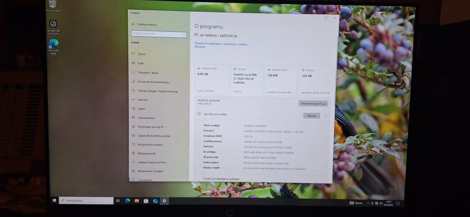 Lenovo V520 stolno računalo, procesor Intel i5-7500@3.40 GHz, memorija 8Gb Ddr4, pohrana M.2 nvme 120Gb