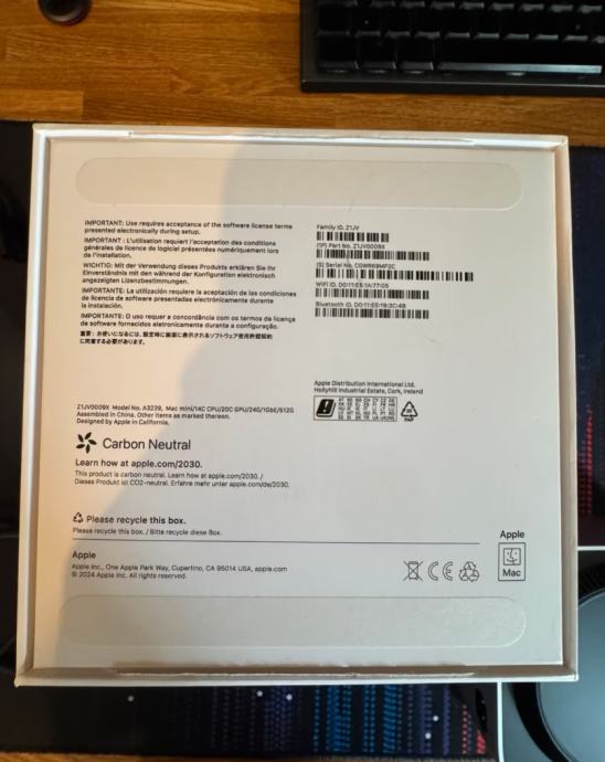 Prodajem svoj gotovo novi Mac mini s m4 Pro čipom. Ovo je verzija s 14 CPU jezgri i 20 GPU jezgri. 24 GB RAM-a i 512 GB SSD-a.