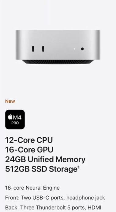 Mac Mini M4 Pro 2024 24GB RAM 512GB SSD + garancija