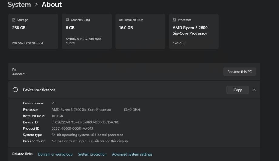 Cpu: AMD Ryzen 5 (2600 six core) 3.4GHz