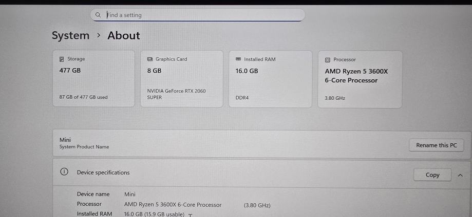 GPU: Nvidia RTX 2060 SUPER 8GB Palit