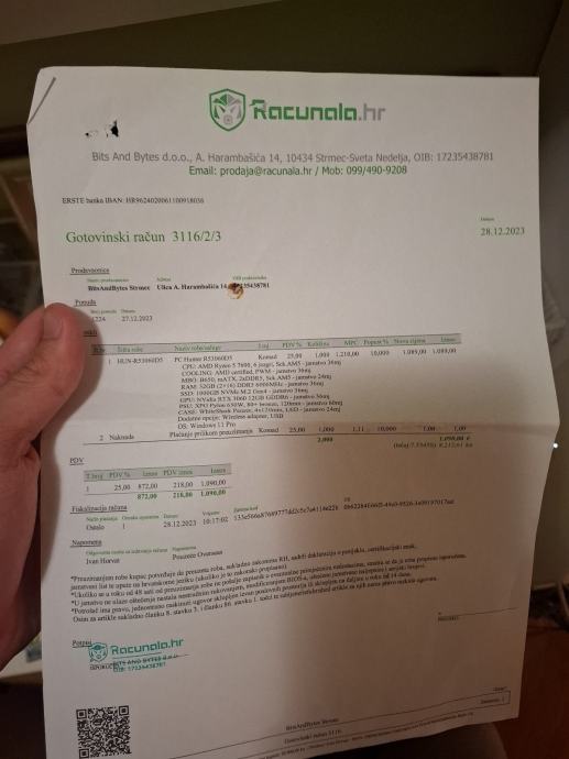 Specifikacije pc-a pisu na slici na papiru