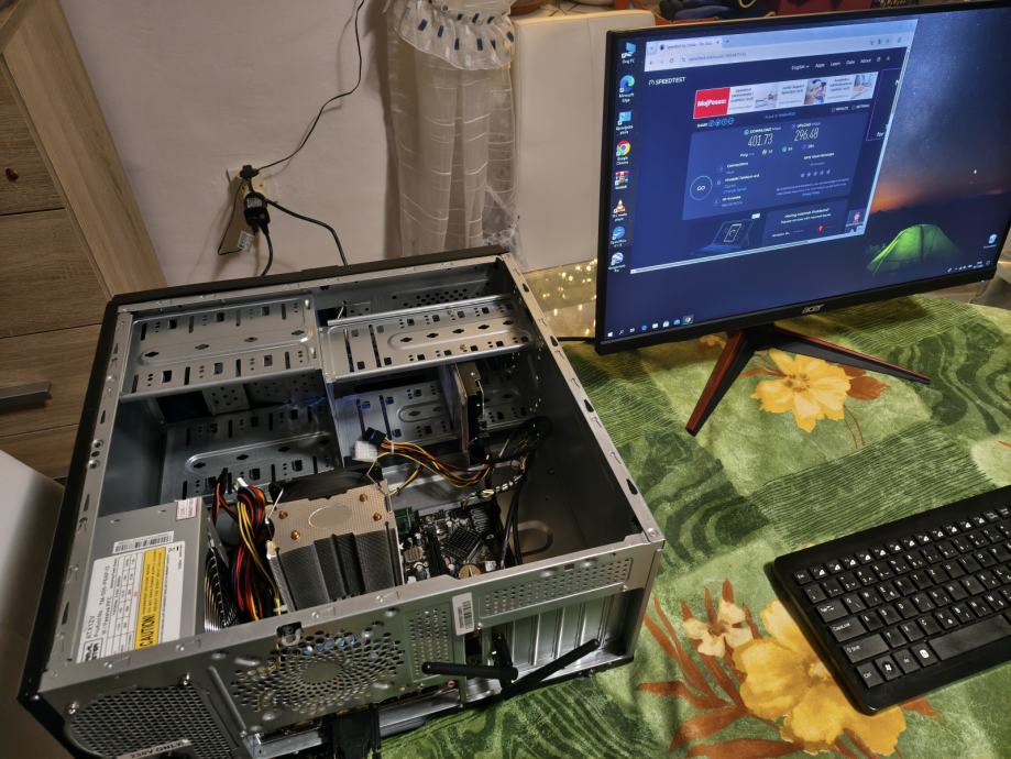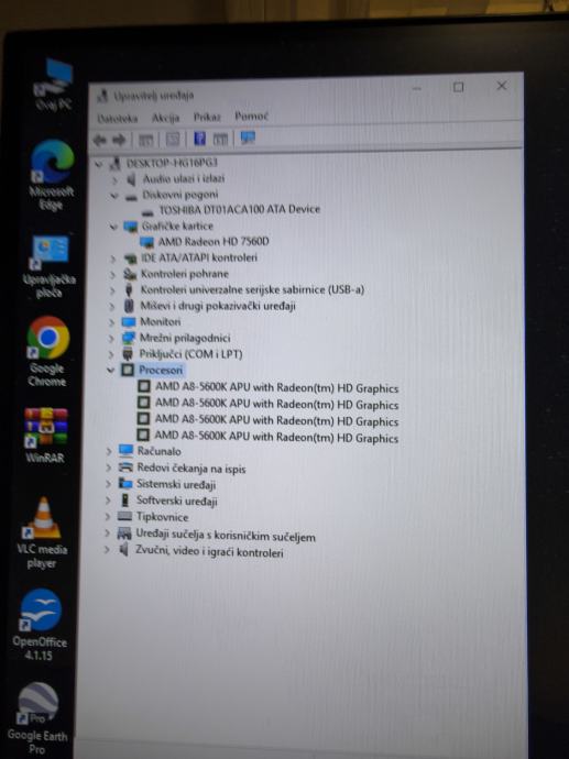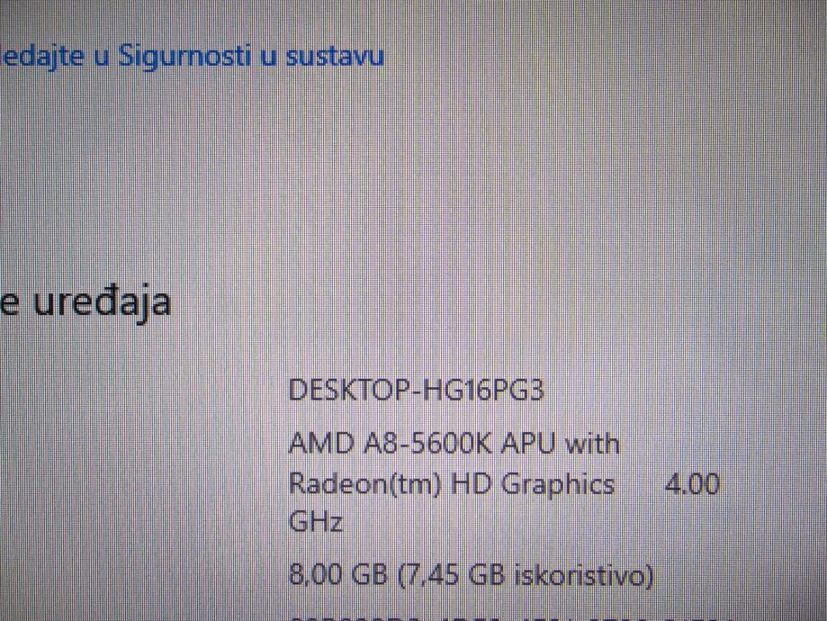 Prodajem potpuno ispravno računalo sa odličnim procesorom AMD A8 5600K s grafičkom HD 7560D, 8 GB rama DDR3, HDD 1000GB, WI-FI kartica sa vanjskim antenama, napajanje 500 W, Windows 10 pro aktiviran. Računalo je tiho, radi odlično i brzo, stavljena nova termalna pasta na hladnjak te je ispuhano od prašine. Instalirane su sve osnovne aplikacije ( vidljive na fotografijama), tako da je računalo potpuno spremno za upotrebu. Nije korišteno za igrice nego samo za surfanje, You tube i gledanje filmova preko DVD-a. Ostale karakteristike vidljive su na priloženim fotografijama. Prodaje se samo računalo bez periferije. Uz računalo dolazi i kabel napajanja.