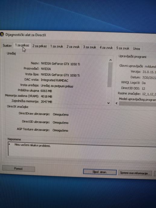 Grafička: Nvidia GeForce GTX1050TI 4GB