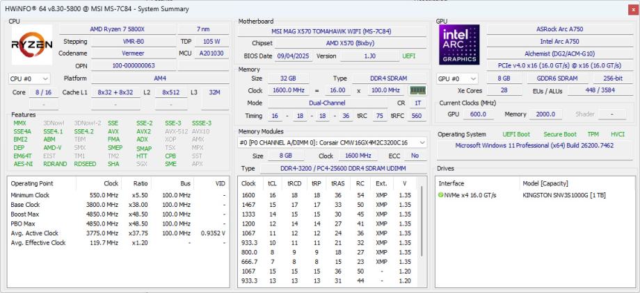 PC AMD Ryzen 5 5800X 32GB RAM Intel Arc A750 8 GB