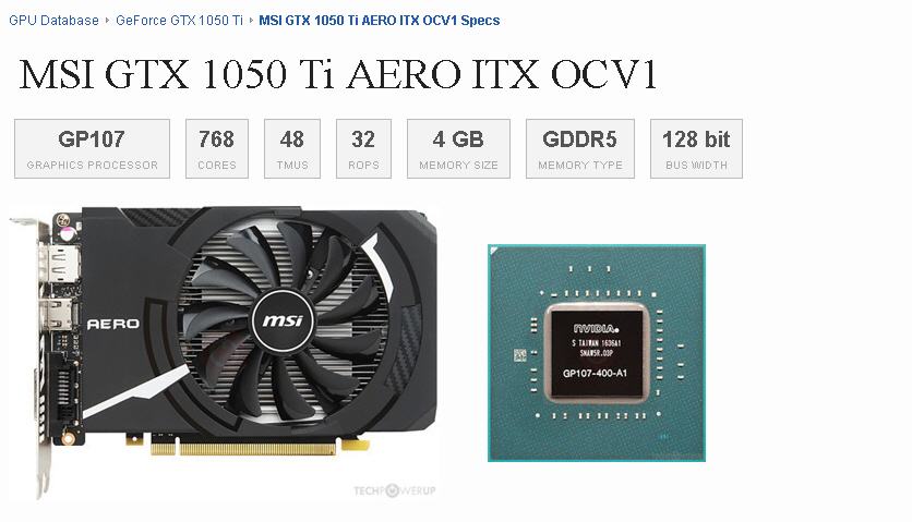 GRAF .. MSI GTX 1050 4GB Ti AERO ITX OCV1, DX12,