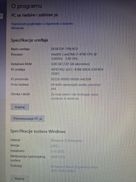 Prodajem stolno računalo I7 4790 sa 8 gb rama, grafika Nvidia gtx 750 Ti