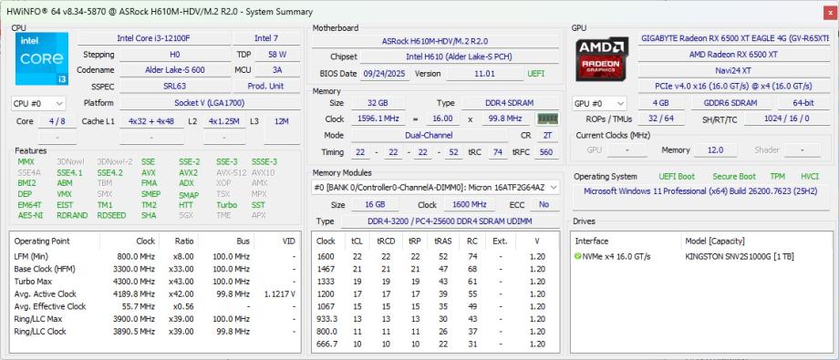 PC Intel Core i3 12100F 32GB RAM AMD Radeon RX 6500 XT 4 GB