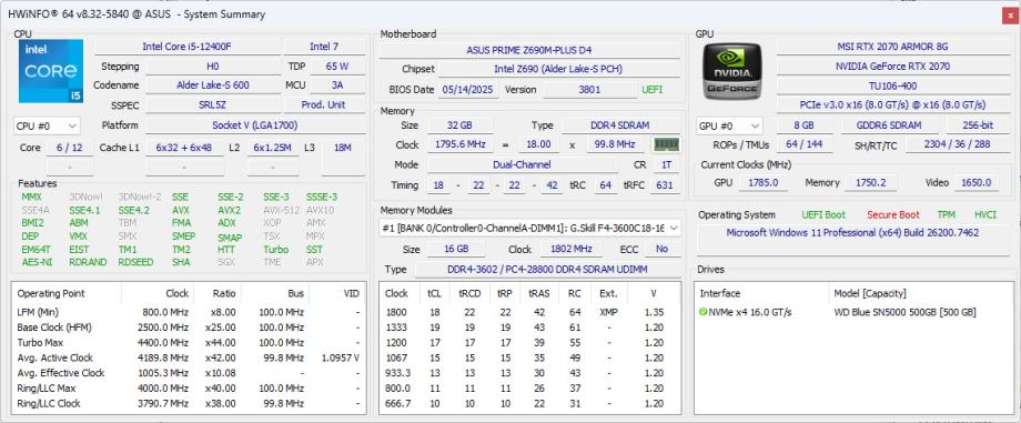PC Intel Core i5 12400F 32GB RAM nVidia GeForce RTX 2070