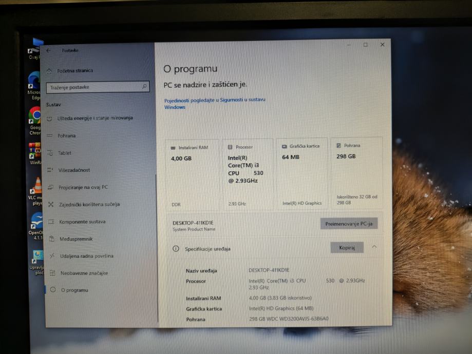Prodajem ispravno i tiho komplet računalo sa monitorom Asus 19 inch, tipkovnicom i svjetlećim mišem kao i sa svim potrebnim kablovima (2 naponska, 1 VGA, 1 DVI, 1 mrežni) tako da je računalo odmah spremno za upotrebu. Instaliran je nanovo Windows 10 pro-aktiviran, kao i svi potrebni programi. Stavljena je nova pasta na hladnjak procesora kao i ispuhan je od prašine. Karakteristike svih komponenti vidljive su na priloženim fotografijama.