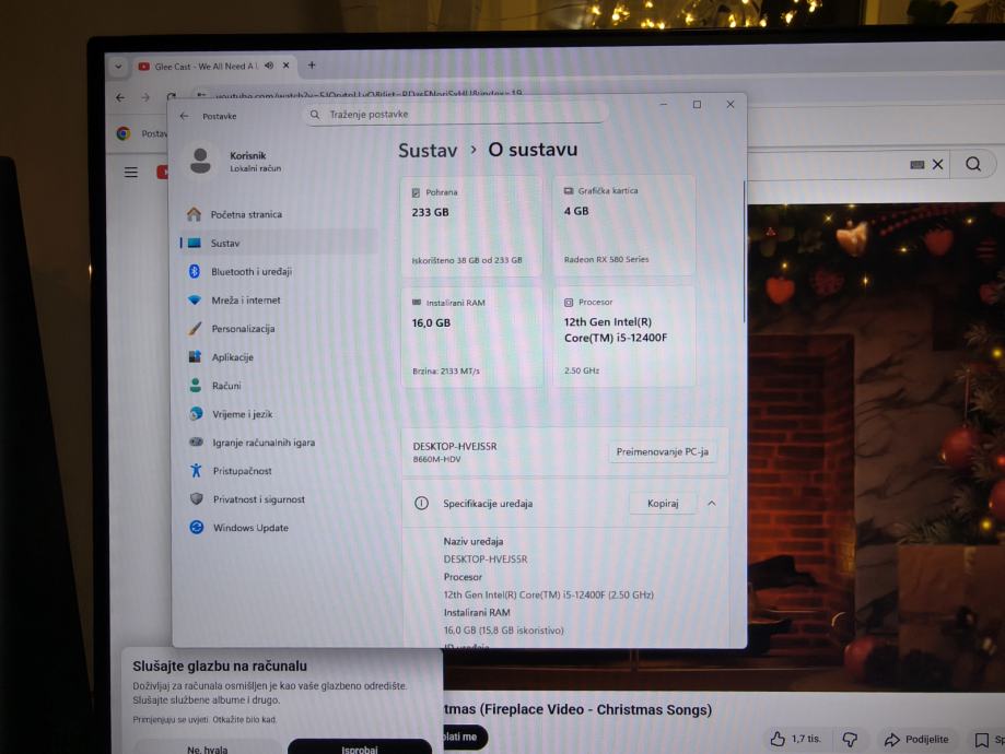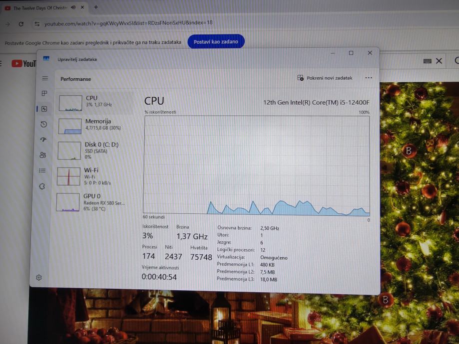 Prodajem navedeno računalo na kojem se mogu igrati i igrice ( ne znam koje jer ih ja ne igram), Komponente računala su potpuno nove osim SSD (3 god) i procesora 12. generacije koji je star jednu godinu i5 12400F sa turbo boostom do 4.4 GHz. 16 GB RAM-a Vengeance također novi. Na matičnu je ugrađena nova WIFI kartica koja je dosta brza ( brzina interneta vidljiva na fotografijama). Kućište je novo MS s prozirnom stranicom od kaljenog stakla, Uz kvalitetno modularno napajanje Thermaltake 80plus 750W kao i uz novu Matičnu ploču Asrock B660M-HDV dolaze računi i garancije. Uz računalo dolaze nova svjetleća tipkovnica i miš kao i nova maxi podloga ( vidljiva na fotografijama). Ostale karakteristike vidljive su na priloženim fotografijama. Zbog osjetljivosti računalo ne šaljem poštom nego samo osobno preuzimanje.