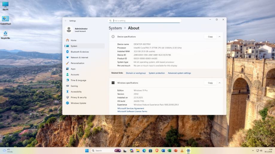 Operativni Sistem : Windows 11 Pro ( 25H2)