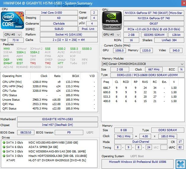 Procesor: Intel(R) Core(TM) i3 CPU 550 @ 3.20GHz (Ubrzan na 4.25 GHz !)
