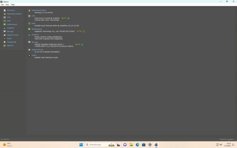 RAM 8,00GB Dual-Channel DDR4 @ 1063MHz