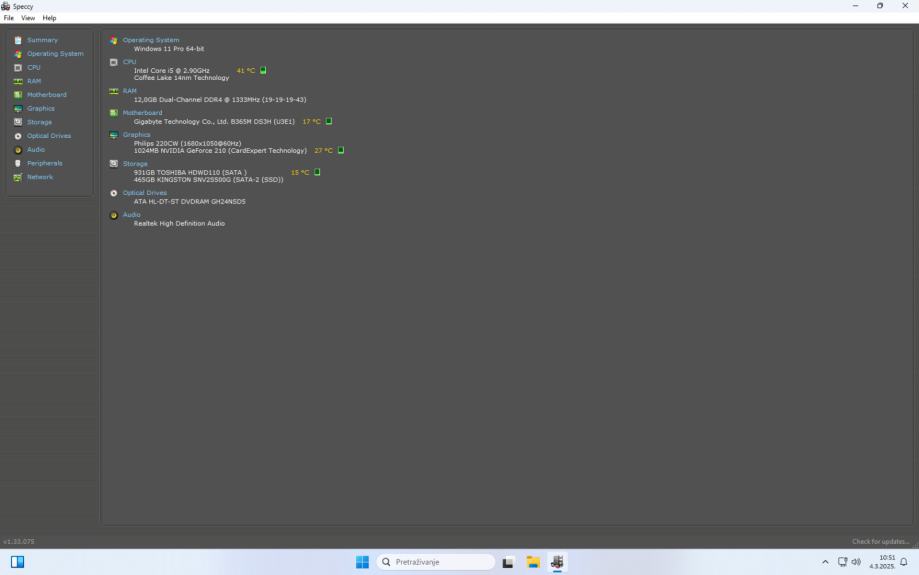 Stražnji panel USB 2.0 x 2, USB 3.0 x 4, HDMI, VGA, DVI