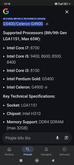 Moguće su nadogradnje procesora 9xxx i 8xxx serijama i5-i7 Max 65w